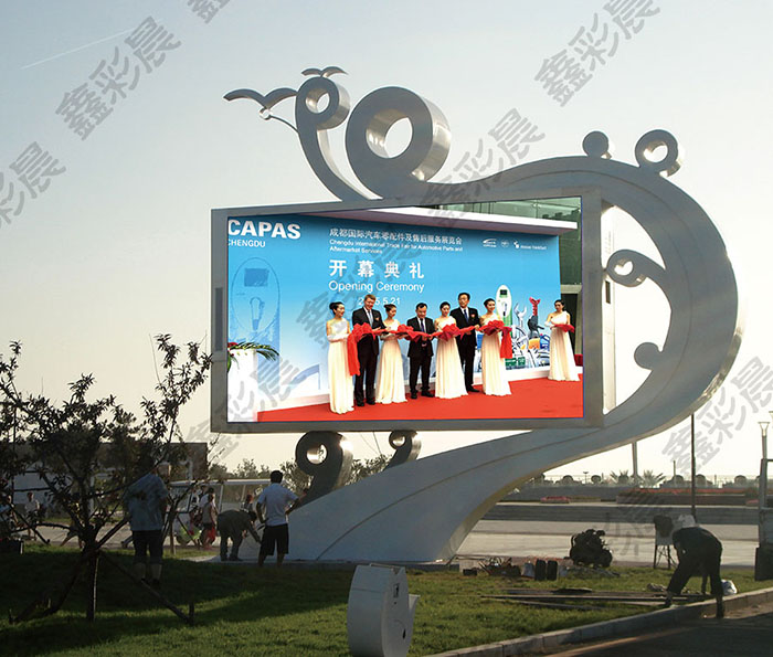 3、立柱式安装:多用于户外广告LED电子显示屏的安装,视野开阔、周围比较空旷的地方,如广场、停车场等。根据屏体面积的大小又可以分为单立柱和双立柱式的安装。柱装适合于空地上LED显示屏的安装,将户外屏安装在立柱上。立柱式除需制作屏体钢结构外,还需制作混凝土或钢立柱,主要考虑基础的地质状况。