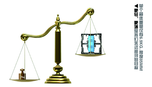 单个箱体重量仅有6.9KG,追求产品质量的同时也能追求极致轻巧。