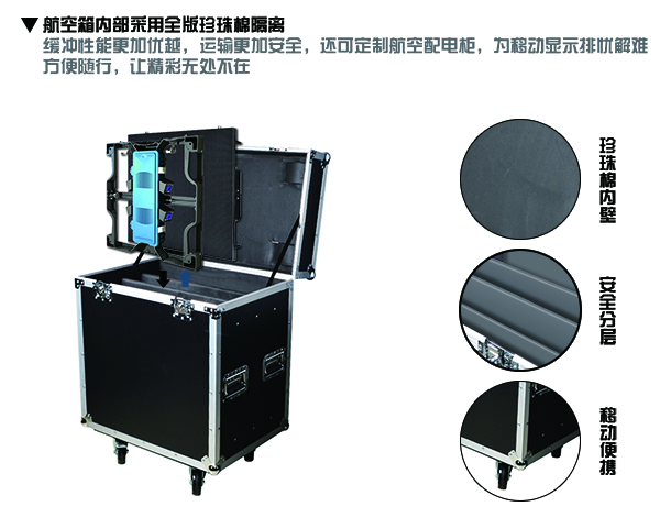 考虑到租赁屏的流动性,运输自然也需要有着一定的保障,独有的专用航空箱运输设备内部采用全版珍珠棉隔离,让缓冲性能更加优越,运输更加安全,还可以定制航空配电柜,为移动显示排忧解难,方便随行。