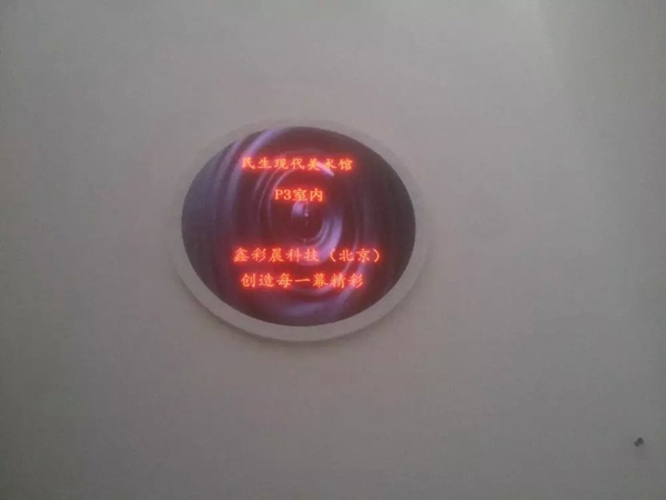 由中国民生银行全额捐资建设的这座美术馆,也是迄今为止国内最大规模的民营美术馆。民生现代美术馆与798艺术区仅一街之隔,坐落于北京恒通国际创新园内,场馆前身是改革开放之初来京的首家外资企业——北京松下彩管厂。这次美术馆经过缜密的对比选取了鑫彩晨科技作为合作伙伴,购买了一款特色的圆形p3全彩led显示屏。