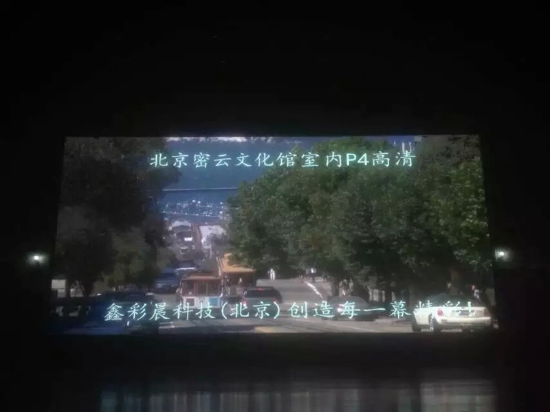 此次合作,鑫彩晨工程部人员专程赴北京进行指导安装并点亮LED显示屏,密云文化馆安装的是一块室内P4高清室内led全彩显示屏,安装在文化馆大厅,主要用做大型活动背景展示,以及一些大型发布会等活动的现场布景。P4是室内全彩led电子屏系列产品中常规型号之一,也是最近几年室内高清LED产品和舞台led电子屏主流型号之一, P4室内led全彩屏是产品工艺成熟度非常高的一款产品,随着鑫彩晨led显示屏工艺的不断改善,此款产品的应用也更为广泛。