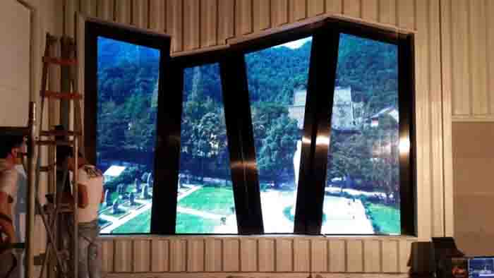 以下是一块结构复杂的全彩led显示屏的结构例子 1.金属框架室内屏一般由铝合金(角铝或铝方管)构成内框架,搭载显示板等各种电路板以及开关电源,外边框采用茶色铝合金方管,或铝合金包不銹钢,或鈑金一体化制成。室外屏框架根据屏体大小及承重能力一般为角钢或工字钢构成,外框可采用铝塑板进行装饰。 2. 显示单元板这是屏体的主体部分,由发光材料及驱动电路构成。室内显示屏就是各种规格的单元显示板,室外显示屏就是单元箱体。 3. 主控制仪作用是将输入的RGB数位视讯信号缓冲,灰度变换,重新组织,并产生各种控制信号。 4.开关电源用途是将220V交流电变为各种直流电提供给各种电路。 5.传输电缆主控仪产生的显示资料及各种控制信号由双绞线电缆传输至显示屏本体。 6. 扫描控制板该电路板的功能是资料缓冲,产生各种扫描信号以及占空比灰度控制信号。 7.专用显示卡及多媒体卡全彩LED显示屏专用显示卡除了具有电脑显示卡的基本功能外,还同时输出数位RGB信号等信号给主控仪。多媒体卡除了以上功能外还可将输入的类比Video信号变为数位RGB信号(即视讯採集)。 8.其他资讯源及其外接装置包括电脑、DVD、VCD、摄录影机等。以下图片为全彩led显示屏实拍效果图-宁波北仑博物馆室内全彩led显示屏!